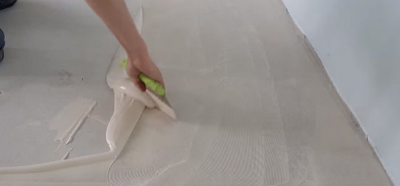 чтобы клей равномерно застывал, работать с ним необходимо в конкретном температурном режиме. У воздуха, впрочем, как и у основания пола, температура должна быть от 5° до 25°. Чем выше она будет, тем состав, кстати, быстрее схватится;